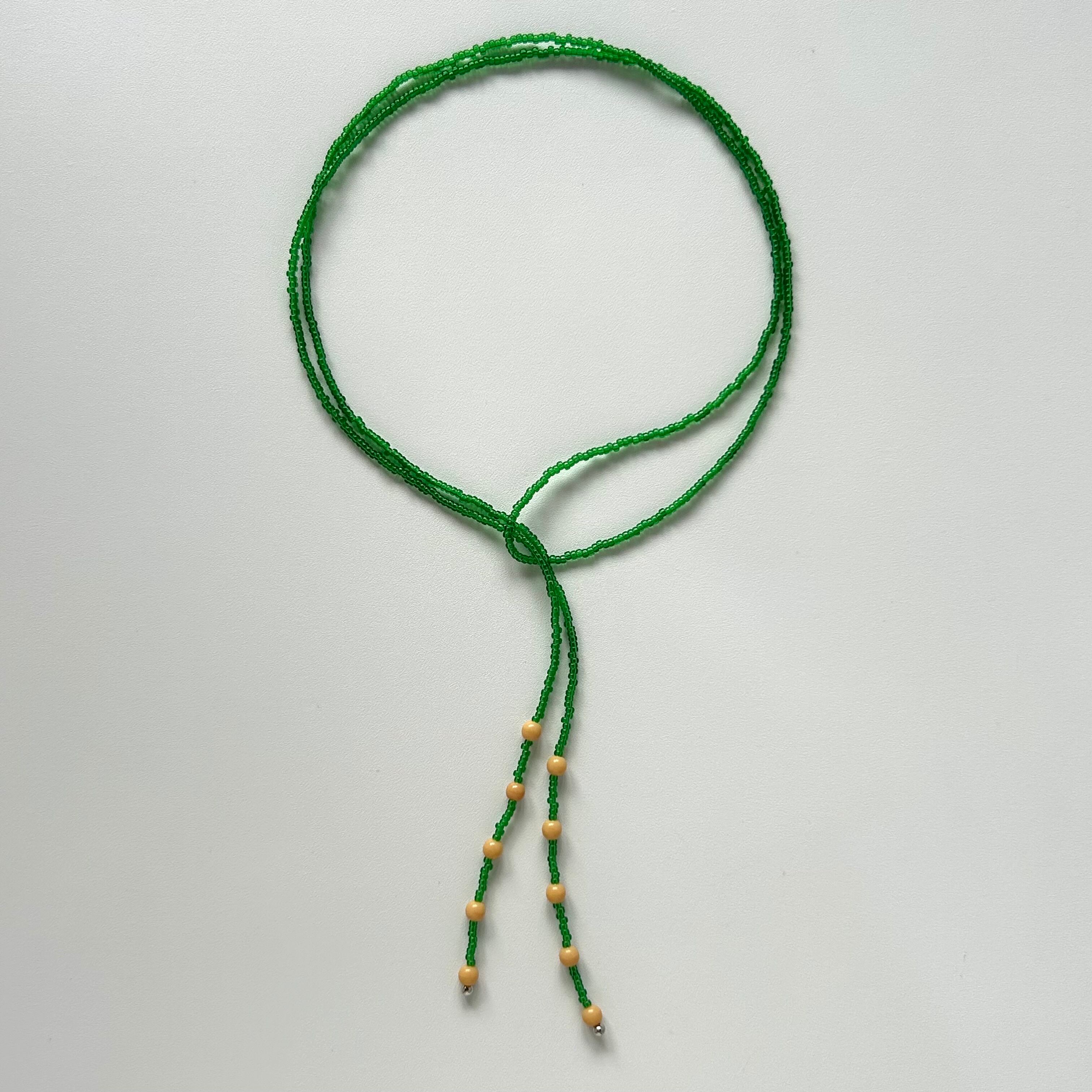 写真のように二重にして巻きつけることでネックレスとしてお使いいただけます。