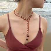 写真のように二重にして巻きつけることでネックレスとしてお使いいただけます。